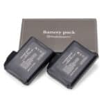- De batterij kan 1000 keer opgeladen worden. Na 500 keer opladen te zijn is het maximale vermogen nog 80%.